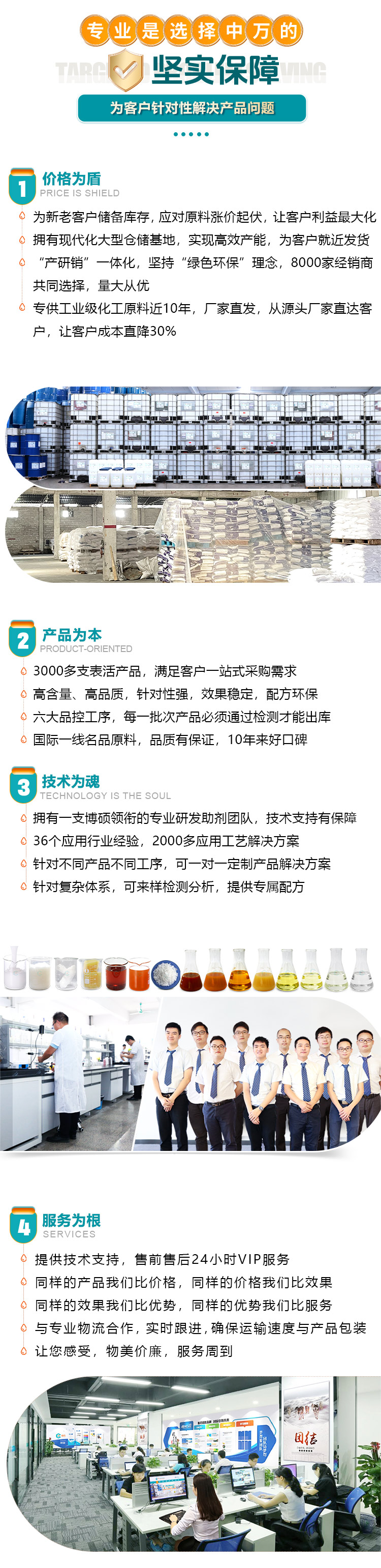 | 產(chǎn)品名稱 | 粉狀涂料保濕劑 | 產(chǎn)品特性 | 易溶于水,具有優(yōu)良的潤(rùn)濕、柔軟、防沉性能。 |